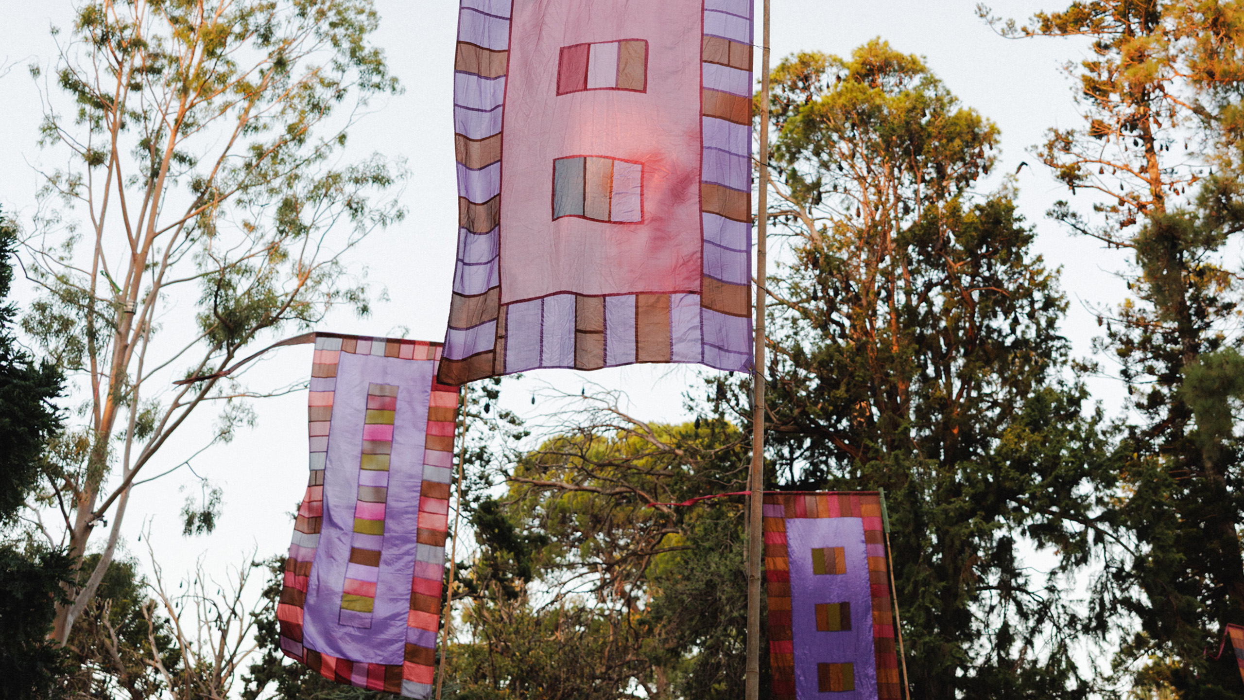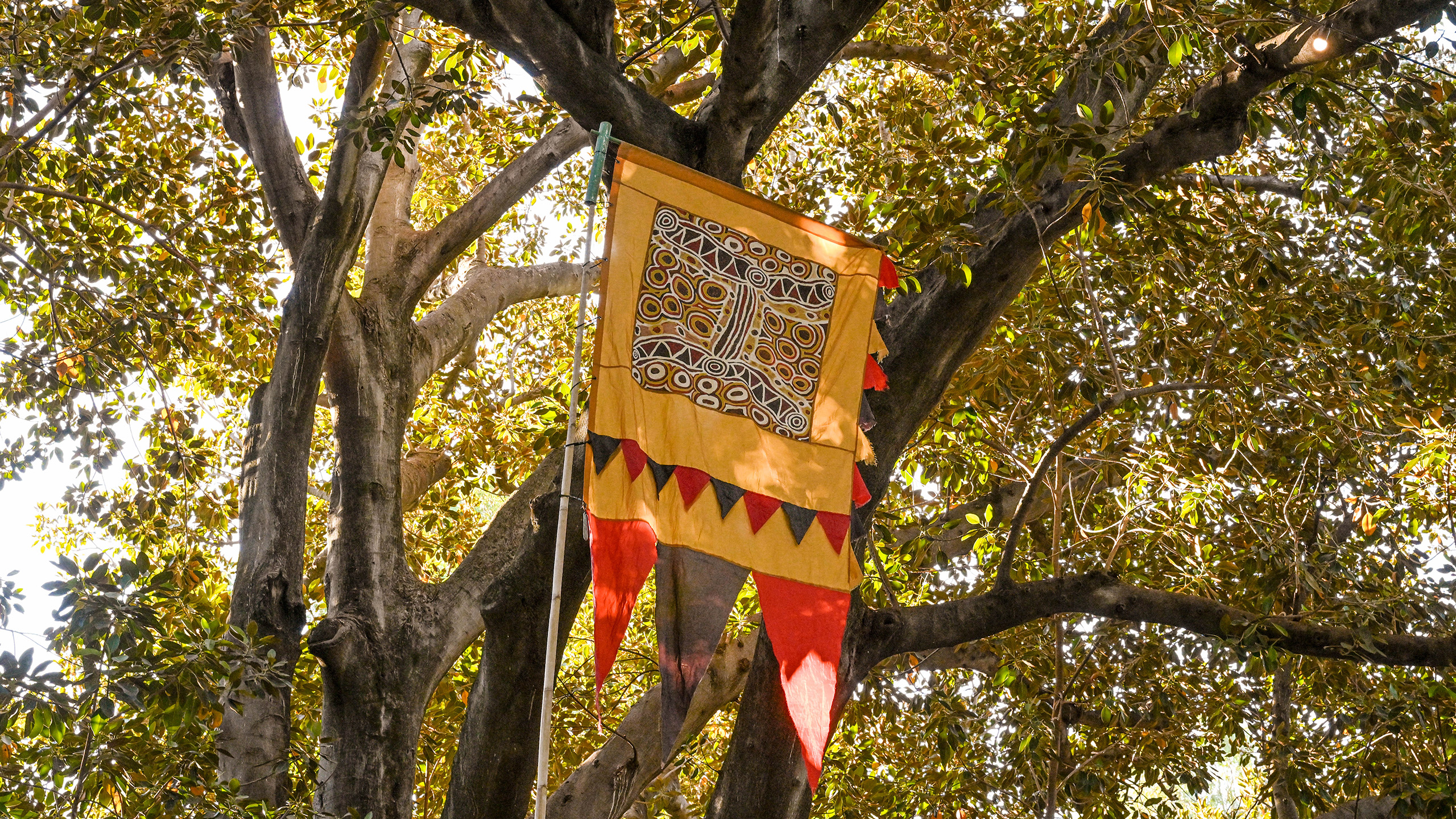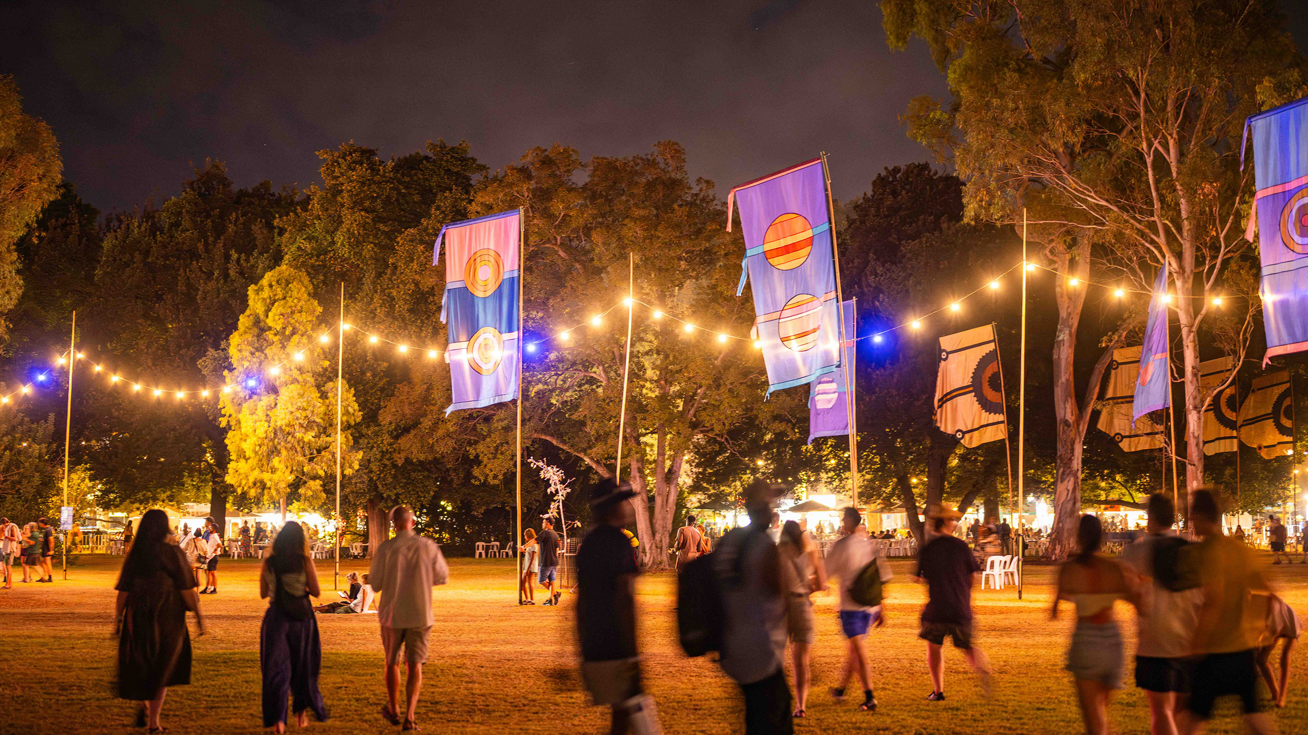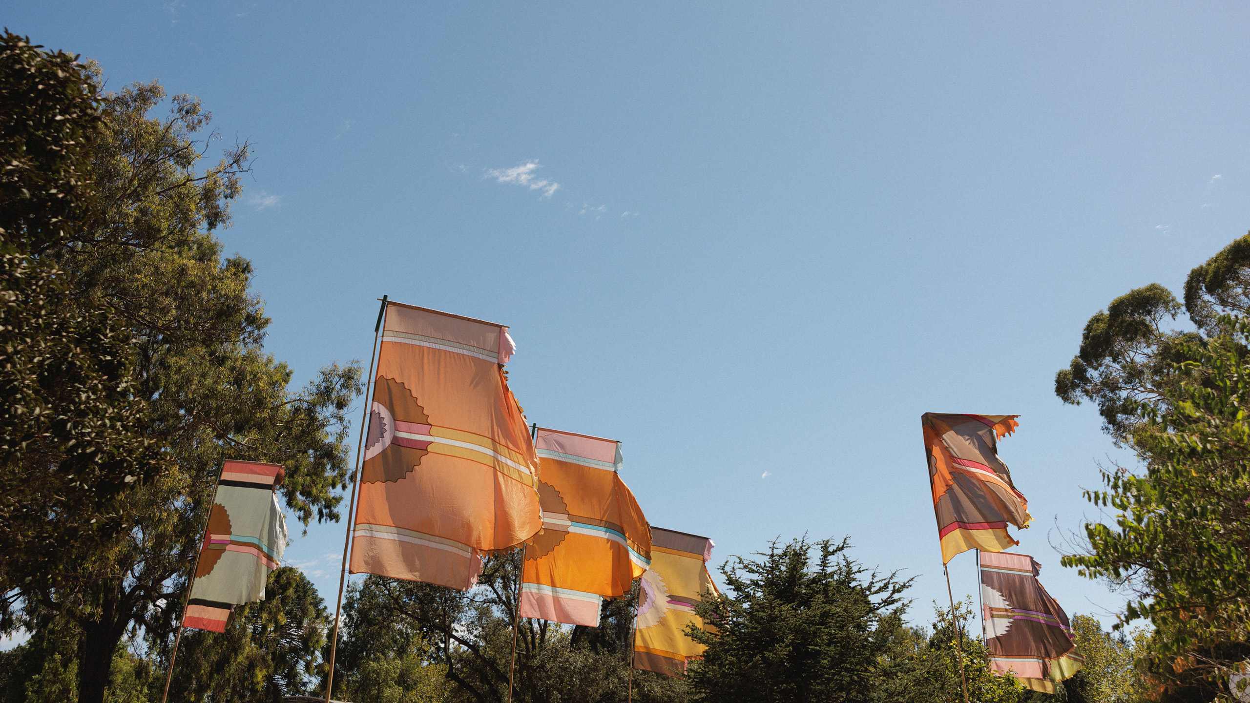 Born in his home studio in the UK and Spain, Watt’s flags made their way down under and have adorned the WOMADelaide site since 1999, adding pops of colour and movement amongst the trees during the festival.