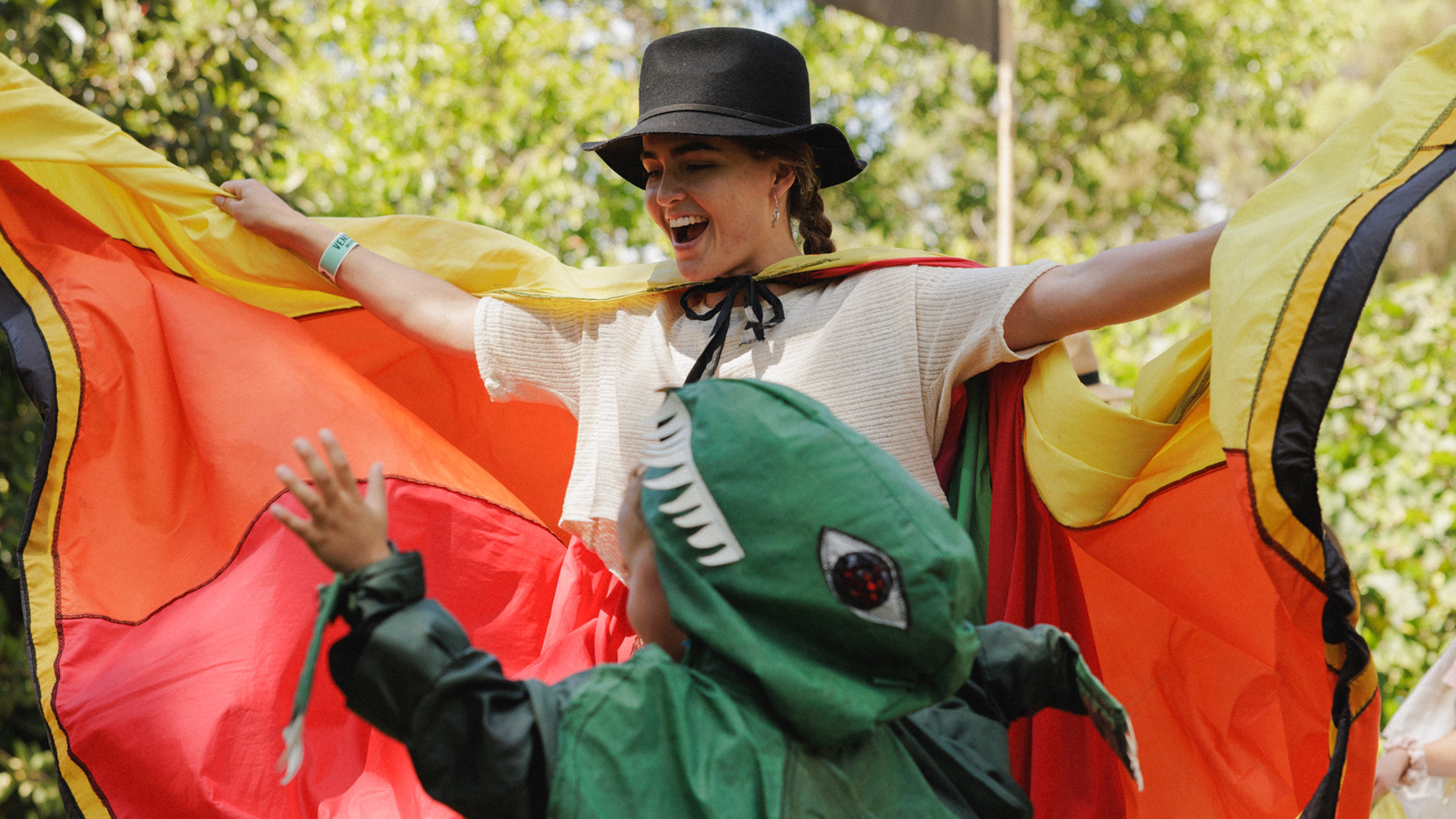 A weekend of colourful, ethereal, theatrical fun, storytelling, dress-ups and parades, led by revered community artist Evelyn Roth.