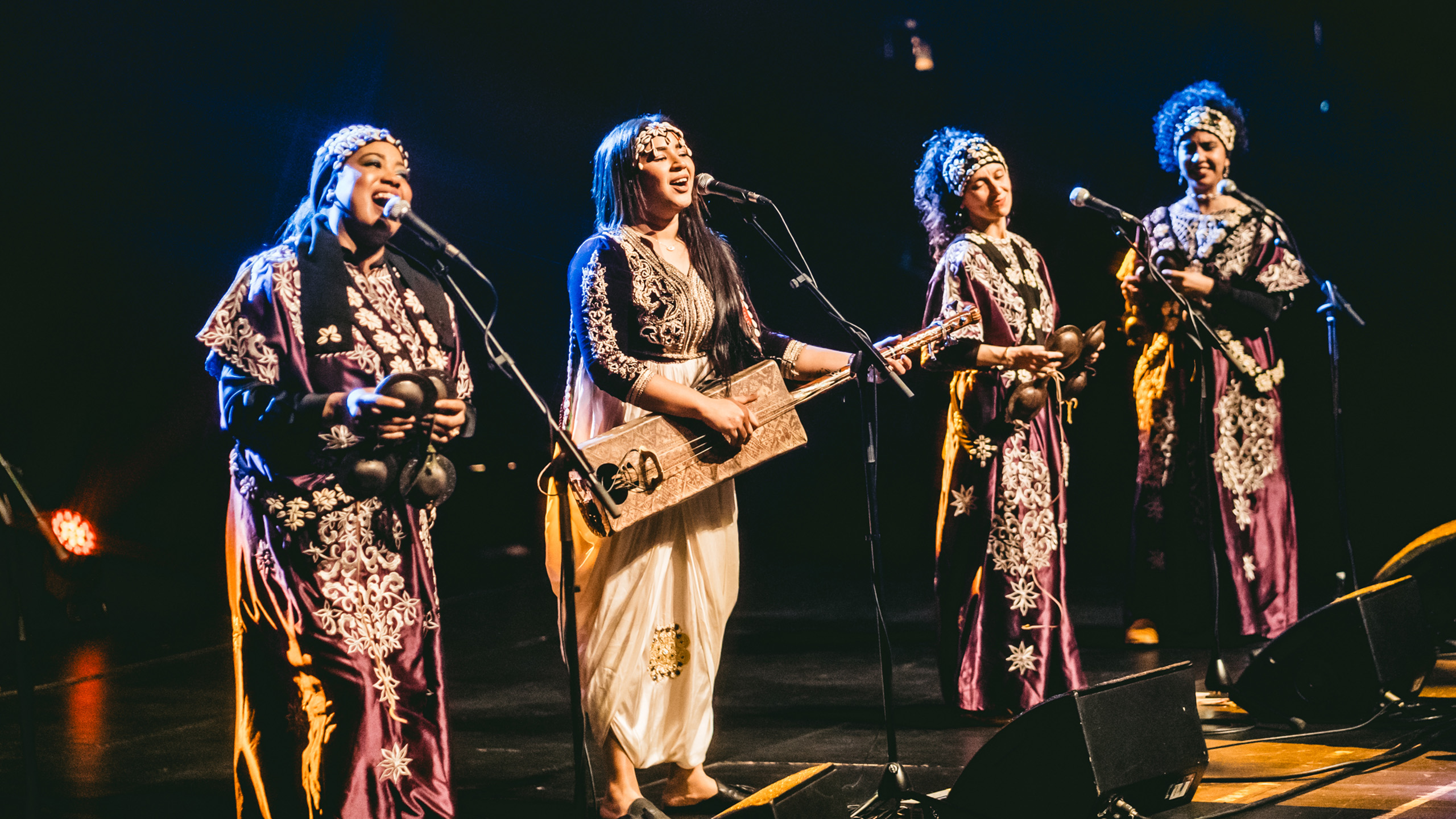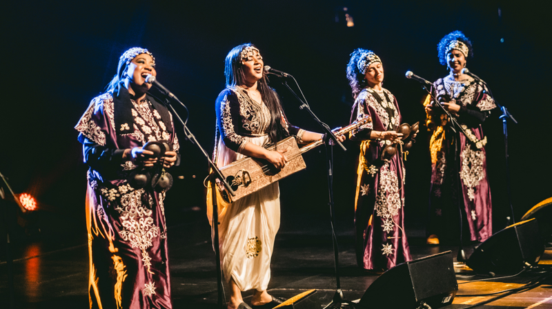 Morocco’s first female Gnawa musician, Asmâa Hamzaoui is a leading player in a new wave of women now performing this traditionally male-only brand of evangelistic desert blues. With her all-female ensemble Bnat Timbouktou she creates a soundscape of rhythmic percussion with her expressive voice and masterfully played guembri (a plucked lute) at the heart of the performance. Gnawa is a set of musical events and therapeutic rituals that mix the secular with the sacred. It has now been UNESCO listed as an Intangible Cultural Heritage of Humanity. “To us, gnawa stands above all other kinds of music,” says Hamzaoui. “It’s our childhood. It’s spiritual, healing and it makes you feel grounded.” Although a traditionalist in her music, Hamzaoui is also a trailblazer, taking Gnawa to places such as the Roskilde Festival in Denmark, BAM in Barcelona and Kaustinen in Finland to keep it alive.